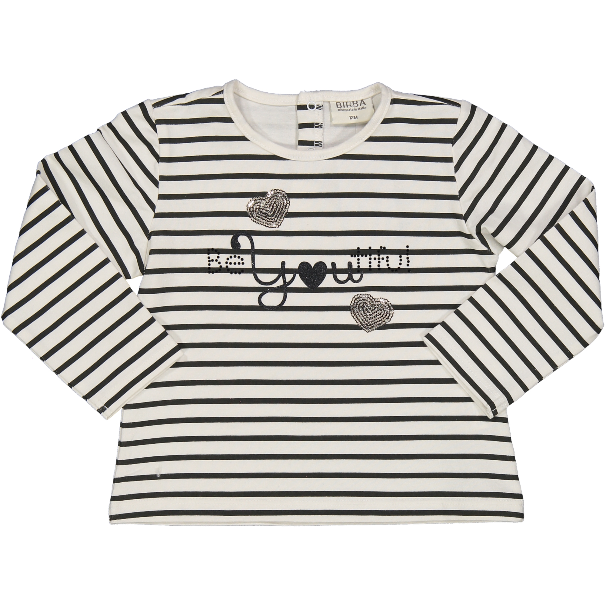 Μπλούζα BIRBA Ριγέ Εκρού-Μαύρο με παγιέτες καρδούλα