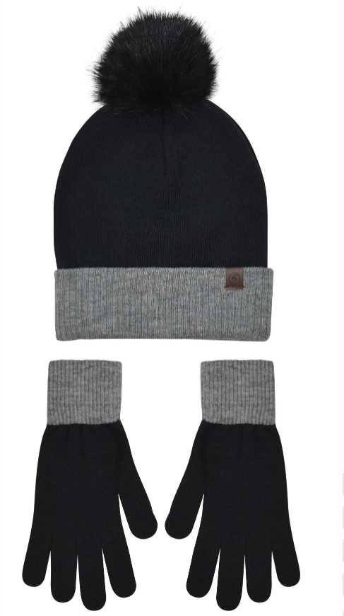 Σετ Σκούφος με Γάντια STAMION Εφηβικό Μαύρο -Γκρι με Πον-Πον